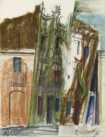 18 Hausfassaden, sign. Barcelona 4.63 K.Kunz, Bleistift/Pastell, 65 x 50 cm