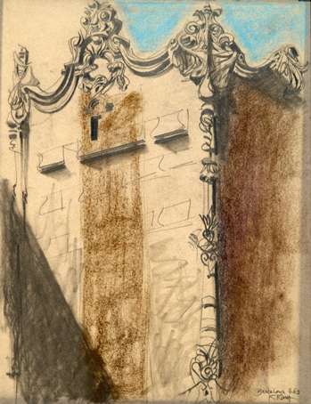 19 Hausfassade, sign. Barcelona 4.63 K.Kunz, Bleistift/Pastell auf farbigem Papier, 65 x 50 cm