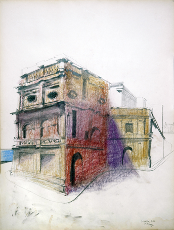 51 Barock-Gebäude, sign. Sevilla 5.66 K.Kunz, Bleistift/Kole/Pastell,