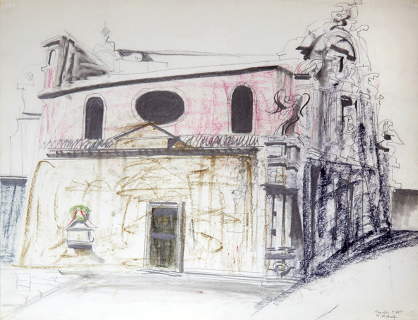65 Kirche, sign. Venedig, 5.65 K.Kunz, Bleistift/Kohle/Pastell, 50 x 65 cm