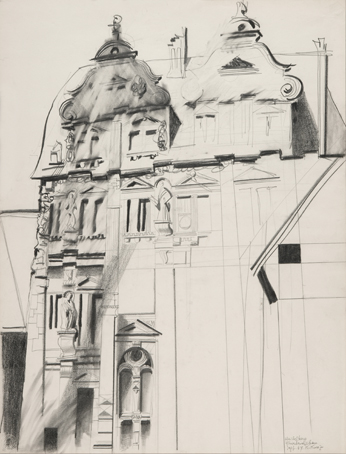78 Heidelberg Friedrichsbau, sign. Heidelberg Friedrichsbau Sept. 67, K.Kunz, Bleistift, 65 x 50 cm