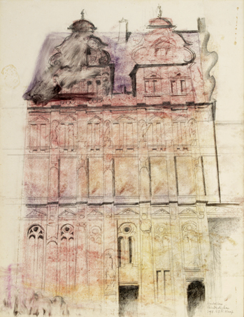79 Heidelberg Friedrichsbau, sign. Heidelberg Friedrichsbau Sept.67 K.Kunz, Bleistift/Kohle/Pastell, 65 x 50 cm