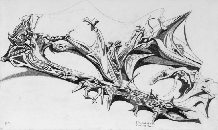 Blatt 13, sign. Bärenfleck-Hütte Okt.51 K.Kunz, Bleistift, 36,5 x 50,5 cm