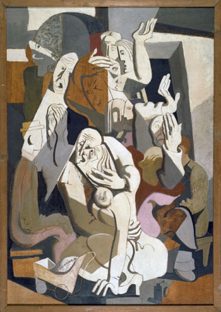 84 Im Keller (Augsburger Bombennacht), April 1945, Öl auf Sperrholz, 122 x 85 cm,