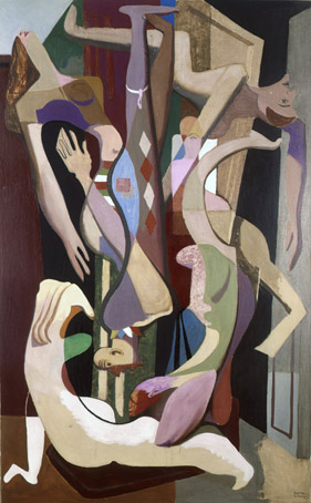 96 Sturz des Harlekins, September 1946, Öl auf Sperrholz, 108 x 67 cm,