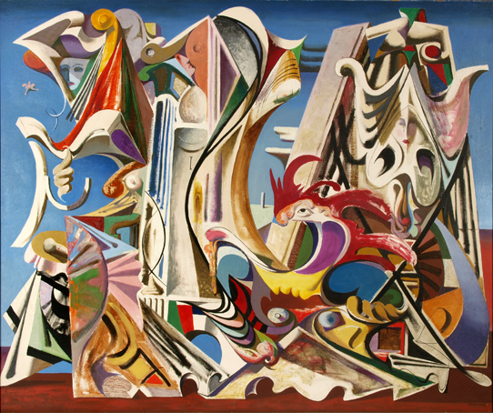 185 Der erregte Hahn, Juni 1954, Öl auf Hartfaser, 123 x 150 cm,