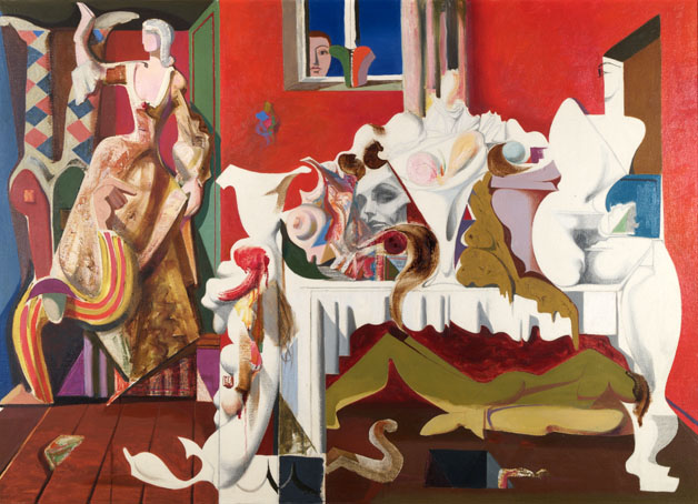 209 Blick ins rote Zimmer, April 1955, Öl mit Bleistift auf Hartfaser, 100 x 140 cm,