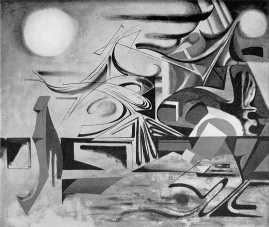 218 Mondnacht, Oktober 1955, Öl auf Hartfaser, 125 x 150 cm, sign. Okt.55 K.Kunz