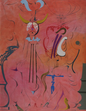 356 Féte galante, Juli 1961, Öl mit Bleistift auf Hartfaser, 130 x 100 cm,