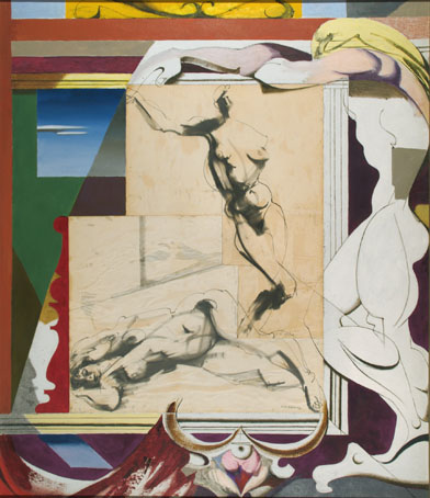 370 Collage mit weiblichen Akten, Öl mit Collage (zwei Aktzeichnungen)