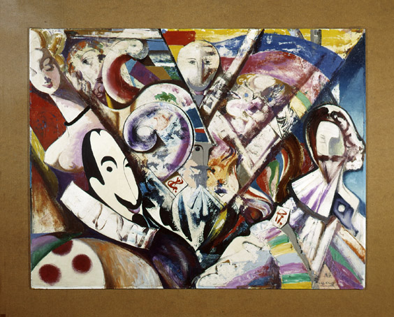 382 Masken, Februar 1962, Öl auf Hartfaser, 125 x 155 cm, sign. II.62 K.Kunz,