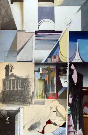 404 Erinnerungen an Paris, September 1962, Öl mit Bleistift und Collage (zwei Zeichnungen, eine Photographie von Wolfg.Kunz) auf Hartfaser, sign. 9.62 K.Kunz