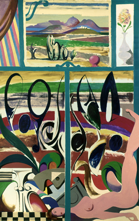 462 Ampurias, Mai 1964, Öl mit Collage (Ölstudie auf Leinwand mit spanischer Landschaft bei Figueras) auf Hartfaser, 200 x 130 cm, sign. 5.64 K.Kunz