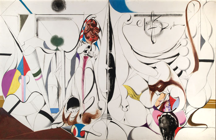 473 Zypressen in weißer Landschaft, September 1964, Öl mit Bleistift auf Hartfaser,