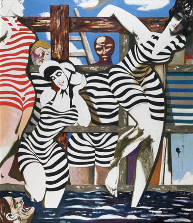 587 Badende, August 1969, Öl auf Hartfaser, 140 x 120 cm, sign. 8.69 K.Kunz