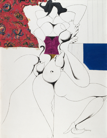 597 Figur, August 1970, Öl mit Collage (Stoff) auf Hartfaser, 130 x 100 cm,