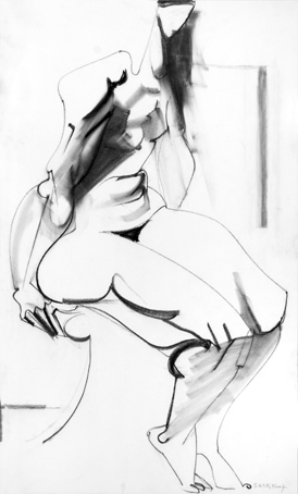 54 1961, weibl. sitzender Akt, sign. 5.61, K.Kunz, Bleistift/Kohle/Papier, 65 x 50 cm