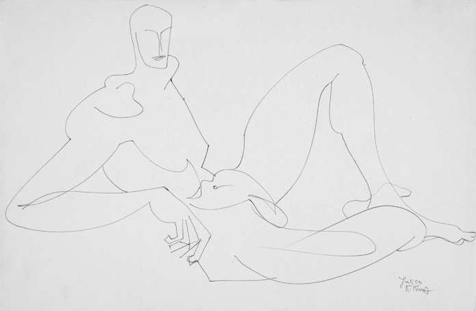 9 1950, männl. Akt, sign. Juli 50 K.Kunz, Bleistift/Papier, 32 x 50 cm