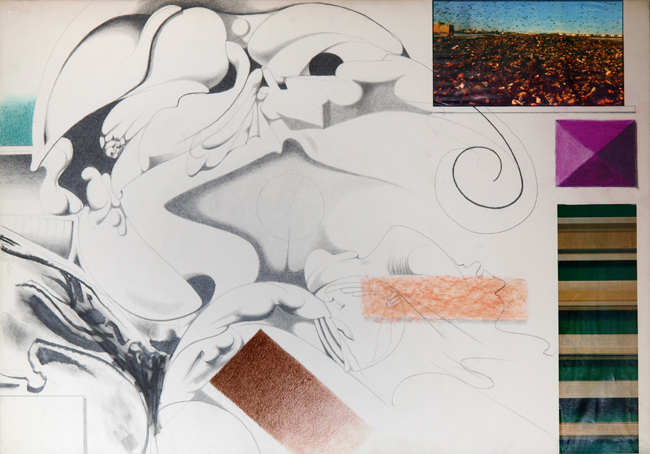 111 unsigniert, 1971, Bleistift/Pastell/Collage, 51 x 73 cm