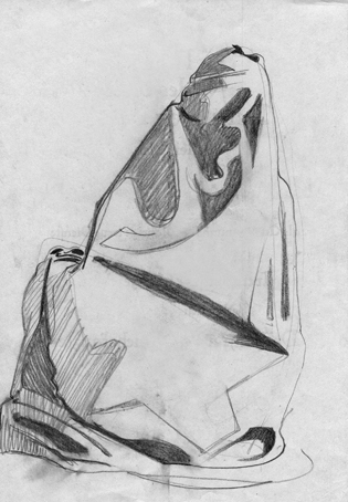 26 Studie einer verhüllten Figur, 1947-1949, unsign. Bleistift, 30 x 20 cm