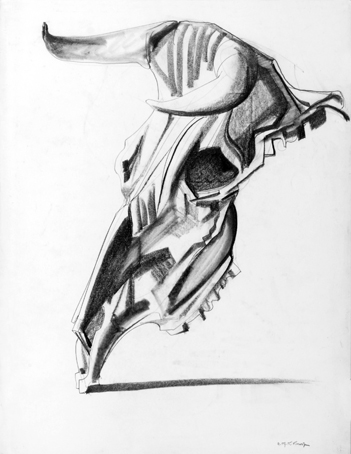 33 Stierschädel, 1959, sign. 4.59 K.Kunz, Bleistift/Kohle, 65 x 50 cm