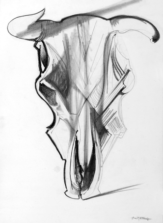 36 Stierschädel, 1959, sign. Juni 59 K.Kunz, Bleistift/Kohle, 65 x 50 cm