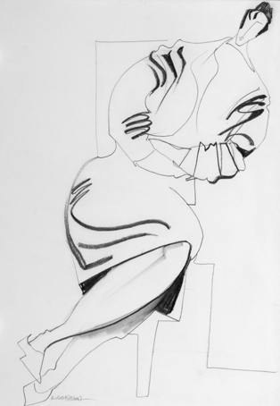 78 sitzende Frau, 1960, sign. 12.60 K.Kunz, Bleistift, 65 x 50 cm