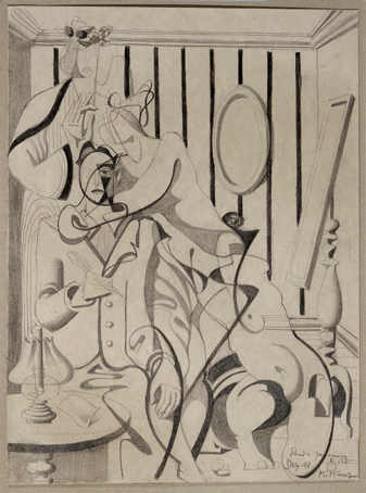 10 Studie zu einem Bild (ausgeführt, "Der Brief", WV 124) 1948, Bleistift auf Papier, 31 x 23,4 cm, sign. Dez.48 K.Kunz