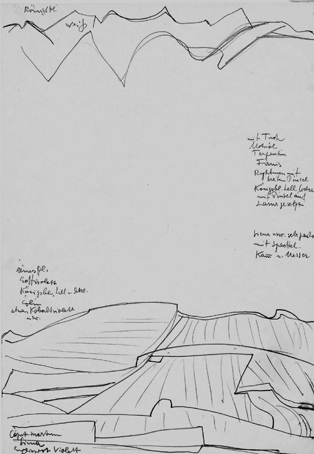 11 ohne Titel (Erinnerungen an Chardonne I, ausgeführt, WV 345) 1961, Bleistift auf Papier, 30 x 21 cm, unsigniert