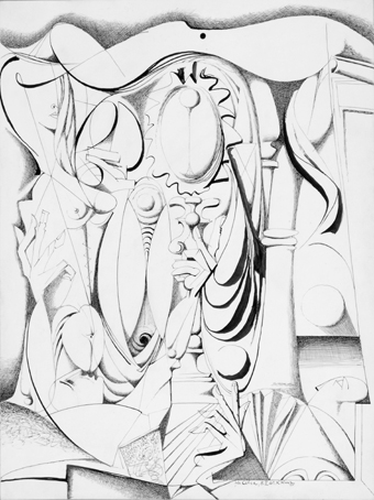 13 Federzeichnung zu Ölgemälde WV 318 „Ovaler Spiegel“ 1960, sign. für Celia,