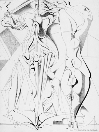 14 Federzeichnung zu Ölgemälde WV 354 „Vaudou in Weiß“ 1961, sign. für Celia