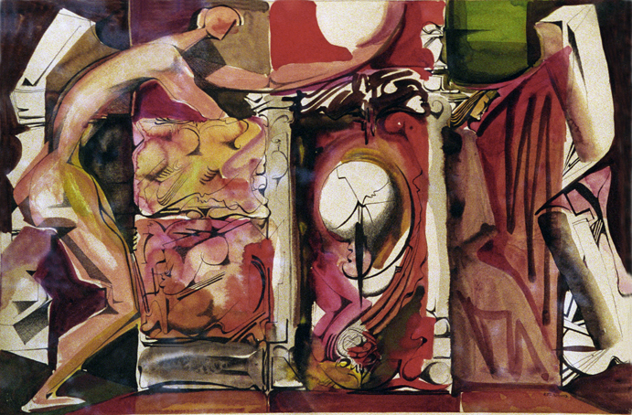 15_Aquarell mit Federzeichnung zu WV 248 „Grabmal mit gesprungenem Ei“, sign. 2.57 K.Kunz,
