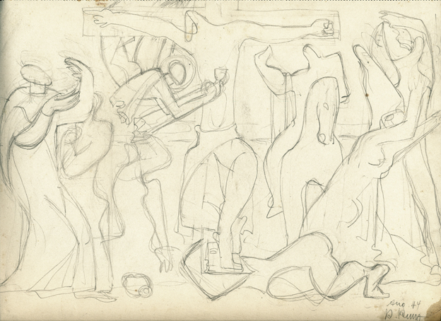 4 ohne Titel (Kreuzigung, ausgeführt und verworfen, WV 86a), 1944, Bleistift auf Papier, 23 x 31 cm, sign. Aug. 44 K.Kunz