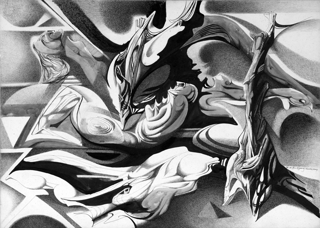 Blatt 35 zum 13. Gesang, sign. Nov.52 K.Kunz, Tusche