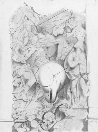 12 Grabstein, sign. 5.57, K.Kunz, Bleistift/Papier, 32 x 24 cm