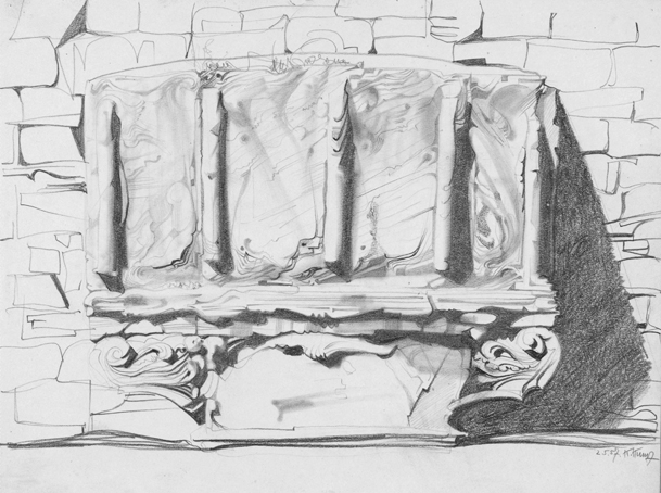 4 Grabstein, sign. 2.5.57, K.Kunz, Bleistift/Papier, 24 x 32 cm