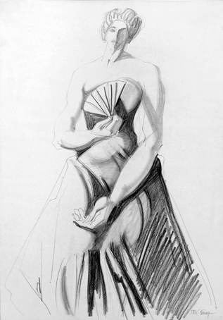 16 Skizze (Frau mit Fächer, Celia Junginger), sign. 58 K.Kunz, Bleistift, 65 x 50 cm