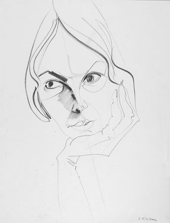 24 Portrait-Skizze einer jungen Frau, sign. 7.65 K.Kunz, Bleistift, 65 x 50 cm