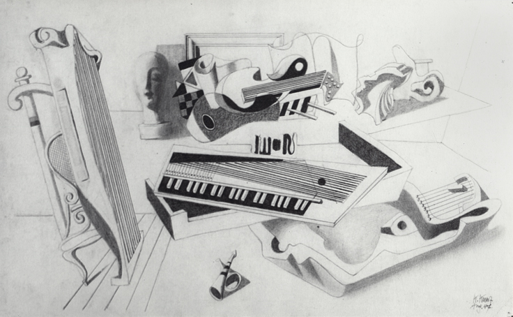 19 Wandbildentwurf für Musikhochschule Saarbrücken (WV 108), sign. K.Kunz Aug. 47, Bleistift auf Papier, 25 x 41 cm, nicht ausgeführt
