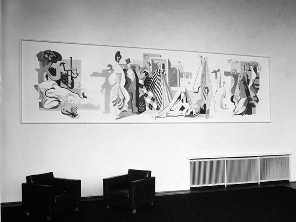 4 WV102c Photographie des ausgeführten Wandbilds WV 102 auf Schloss Halberg, Saarbrücken, von 1947, Öl auf Hartfaser, ca. 170 x 600 cm, Verbleib unbekannt