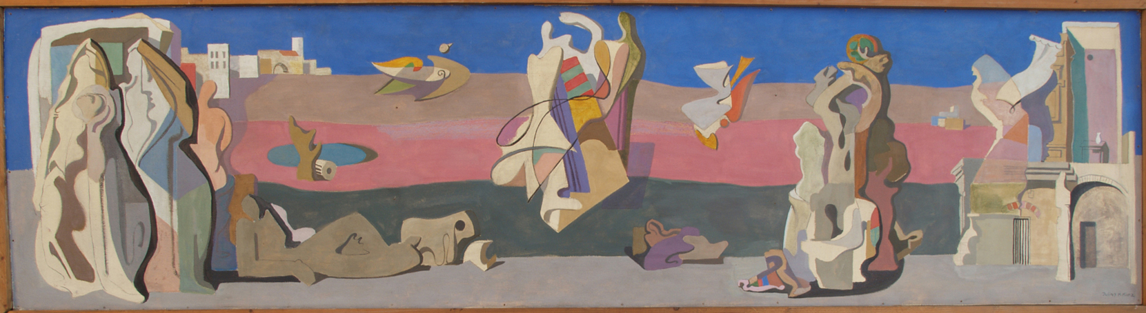 5 WV104 Wandbildentwurf für Universität Homburg/Saar, sign, Juli 47 K.Kunz, eine von drei Tafeln, Öl auf Hartfaser, 67 x 255 cm, nicht ausgeführt