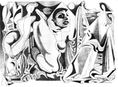 13 Federzeichnungen im Format 28 x 37 cm auf Papier, entstanden in der Zeit vom Februar bis zum Mai 1950. Bis auf Blatt 3, das sich im Besitz von W. D. Schmoll gen. Eisenwerth in Bonn befindet, gehört der Zyklus dem Morat-Institut für Kunst und Kunstwissenschaft in Freiburg im Breisgau. |