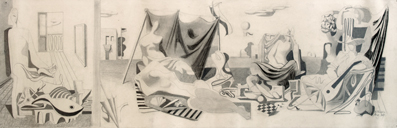 1947, Öl auf Hartfaser, ca. 170 x 600 cm,
