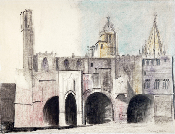 47 Gotische Kirche, sign. Barcelona 9.66, K.Kunz, Bleistift/Kohle/Pastell, 50 x 65 cm