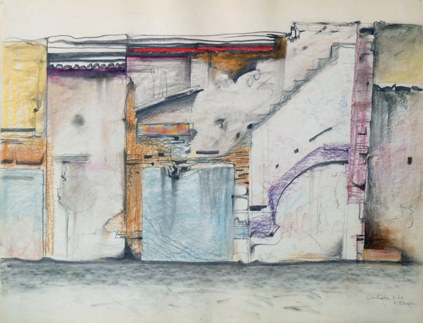 48 Ruinenfassade, sign. Cordoba 5.66 K.Kunz, Bleistift/Kohle/Pastell, 50 x 65 cm