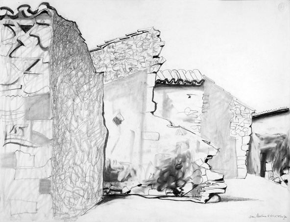 56 Alte Gemäuer, sign. San Marino 5.64 K.Kunz, Bleistift/Kohle, 50 x 65 cm