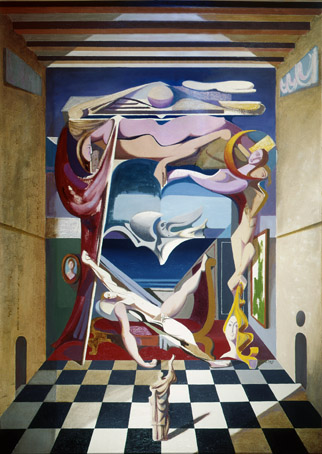 215  Wandbild mit Schachbrett, August 1955, Öl auf Hartfaser, 130 x 100 cm,