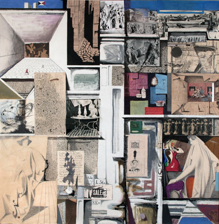 222 Collage mit Tintenklecks, Januar 1956, Öl mit Collage auf Hartfaser,