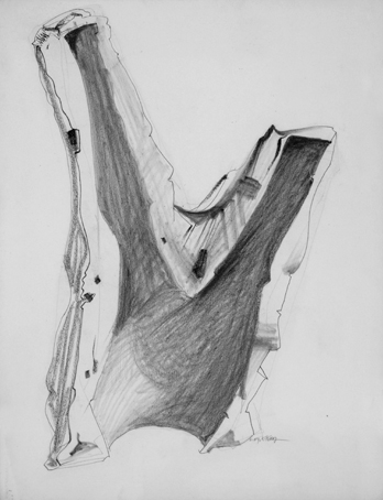 45 Negativform, 1959, sign. Juni 59 K.Kunz, Bleistift, 65 x 50 cm