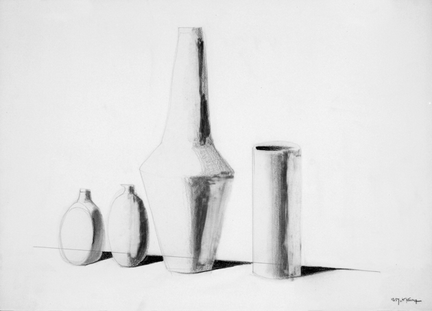 49  Stillleben mit Vasen, 1959, sign. 10.59 K.Kunz, Bleistift/Kohle, 45 x 63 cm